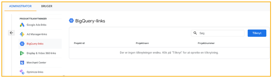 For at kunne se rapporter som indeholder data fra Search Console, så skal du huske at forbinde de to værktøjer.